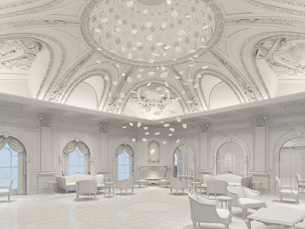 Conversion of the original lecture hall to a grand ballroom finished to the highest of standards. The works comprised of the removal of the existing dome roof and replacement with an elevated dome to form a new clerestory level. The finishes included finite fibrous plaster work, specifically chosen marble stone and highest quality gilding.